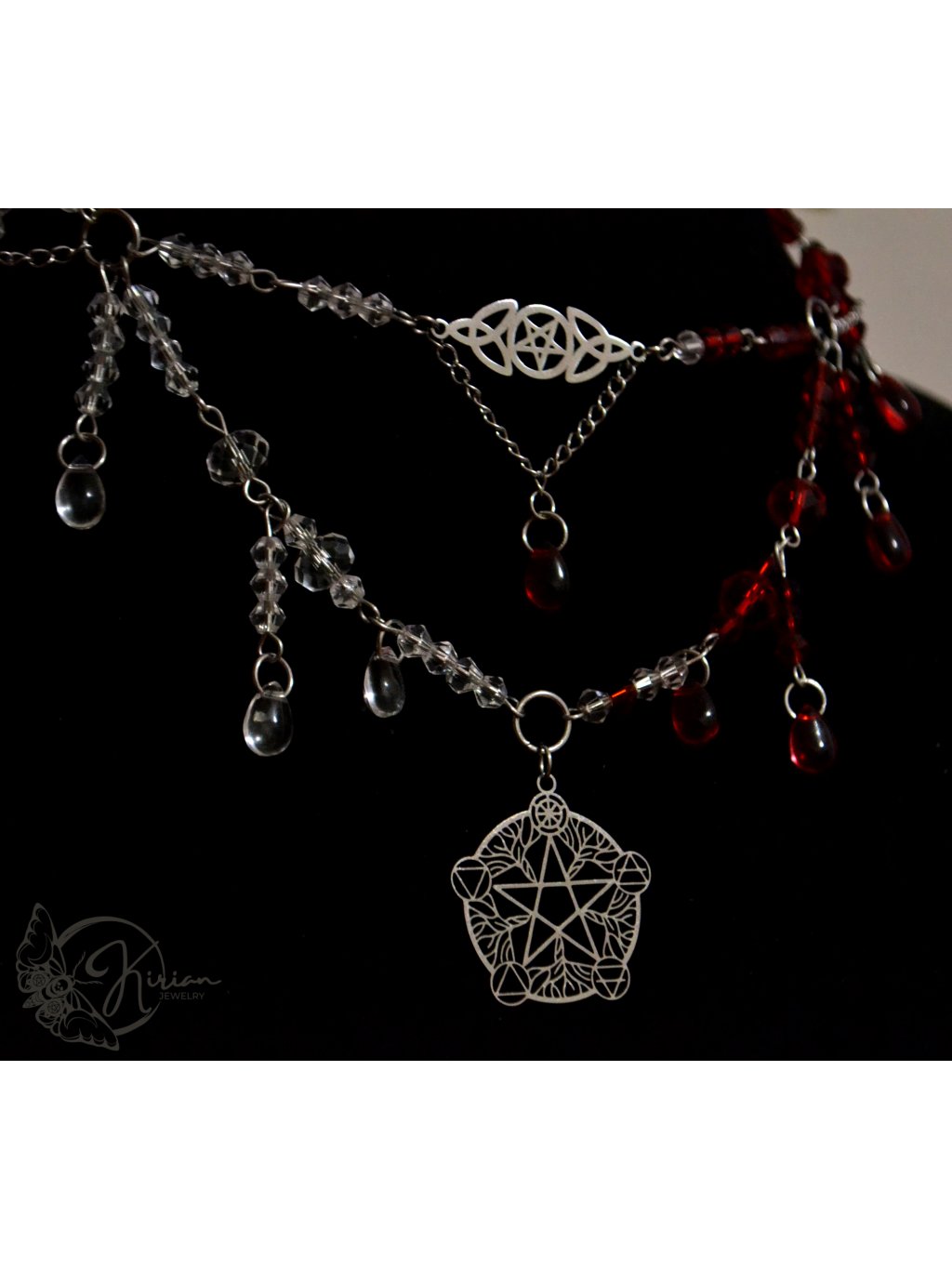 Ručne tvorený náhrdelník z chirurgickej ocele a sklenených korálok z kolekcie "Red".